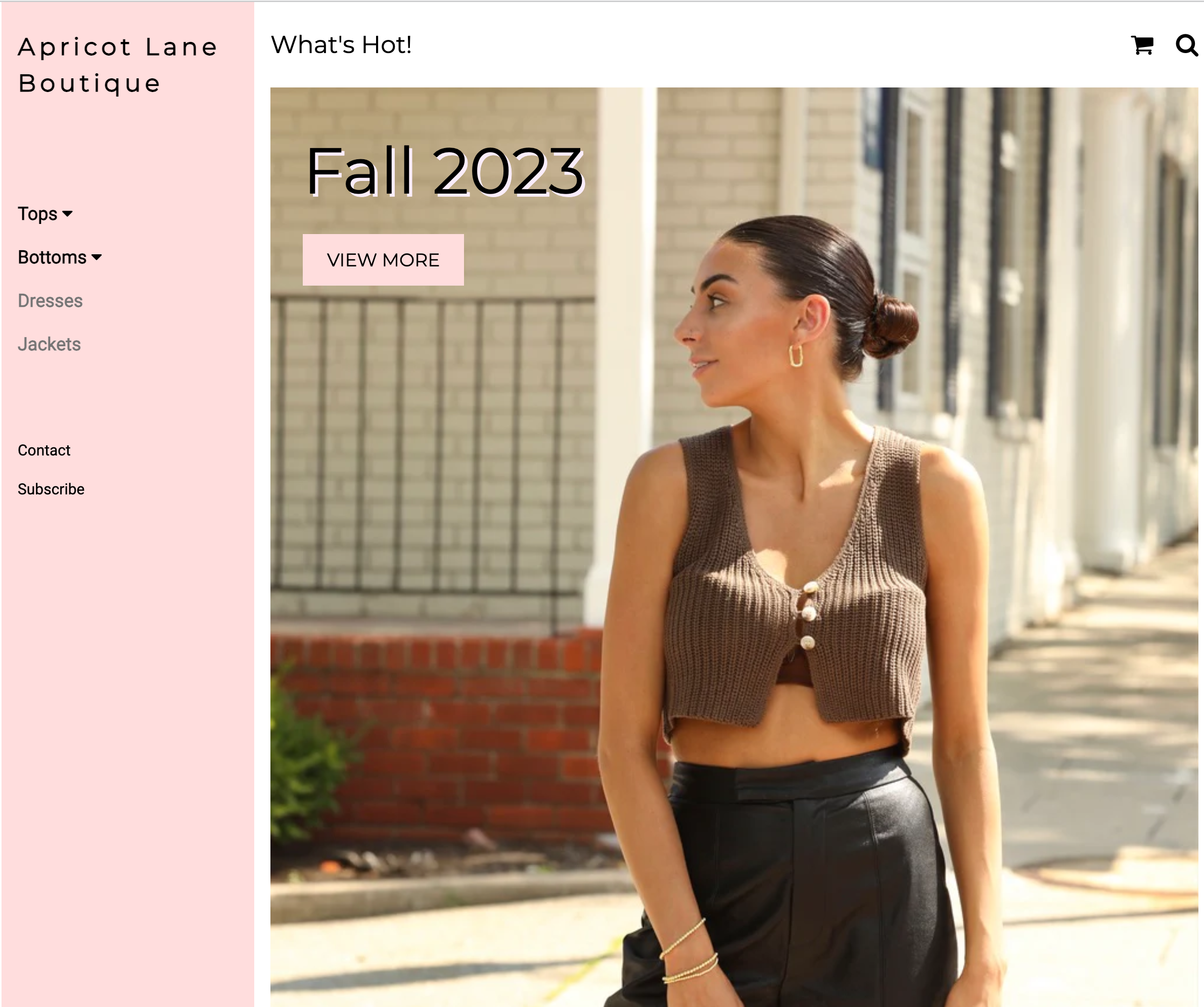 The fonts that were used on the original template were “Roboto” and “Montserrat.” For my website, I decided to keep the font as it matched the aesthetic I was looking to achieve. However, I added a drop shadow effect on the “Fall 2023” collection title to add flair, make the text pop and bring the look together to match other elements on the site.