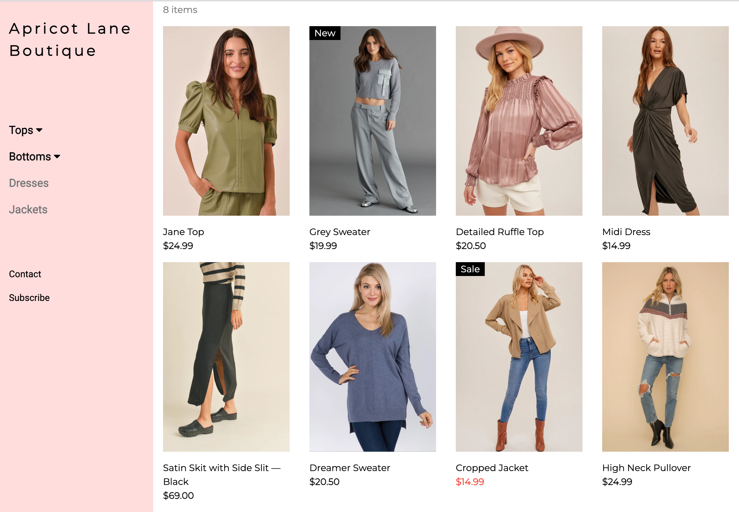 Lastly, I added images from the original Apricot Lane Boutique website I recreated. When it came time to consider which items should be featured on the homepage and the item menu, I simply chose items that were featured on their original page as well as Fall clothing.